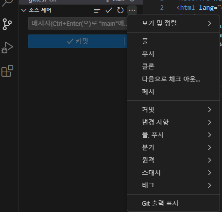 2. 리포지토리 초기화 그럼 아래와 같은 화면이 나온다 > 커밋 클릭