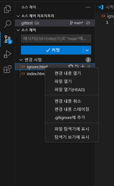 커밋전에 ig nore해주고 싶은 파일 우클릭 > .ignore에 추가 클릭