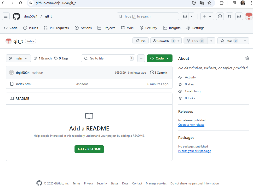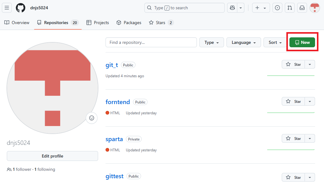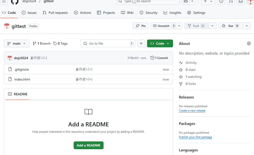 > 이 작업이 내 작업물을 원격저장소와 연결해준것! 이제 파일을 올릴 때 PULL 해주면 원격저장소로 올라간다