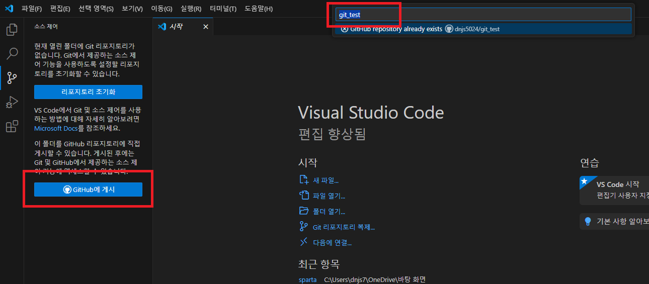 1. GitHub에 게시 클릭 > 프로젝트명 입력