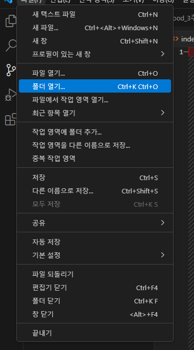 vs 코드에서 파일 > 폴더열기로 해당경로로 설정해준다