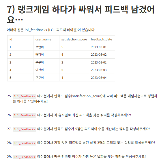 25. select * from lol_feedbacks order by satisfaction_score desc;