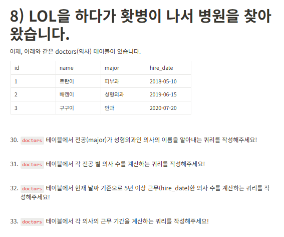 32. select * from doctors where TIMESTAMPDIFF(year,hire_date ,now()) >= 5;
