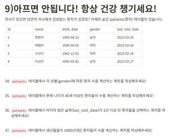 37. select count(*) from (select date_format(birth_date,'%y') year from patients) a where year between 80 and 90;